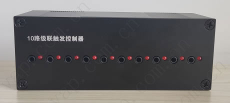 间隔延时触发控制器,控制10路相机同步或间隔触发拍摄,RJ45标准网线联接,一根网线即可级联下一个设备,统一电源供应,统一参数设置,用最少的的连接线控制更多的相机,联接操作数百台级的相机同步间隔拍摄,间隔精度高达1ms,间隔时间可细调。